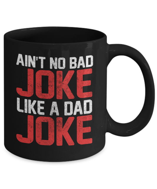 Dear Dad Coffee Mug,Ain't No Bad Joke Like A Dad Joke-Black Porcelain Coffee Mug 11 oz For Father, Son, Daughter, Fathers Day