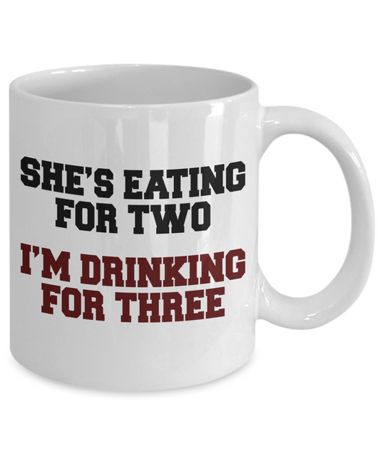 Great Dad Coffee Mug,She's Eating For Two I'm Drinking For Three-White Porcelain Coffee Mug 11 oz For Father, Son, Daughter, Fathers Day