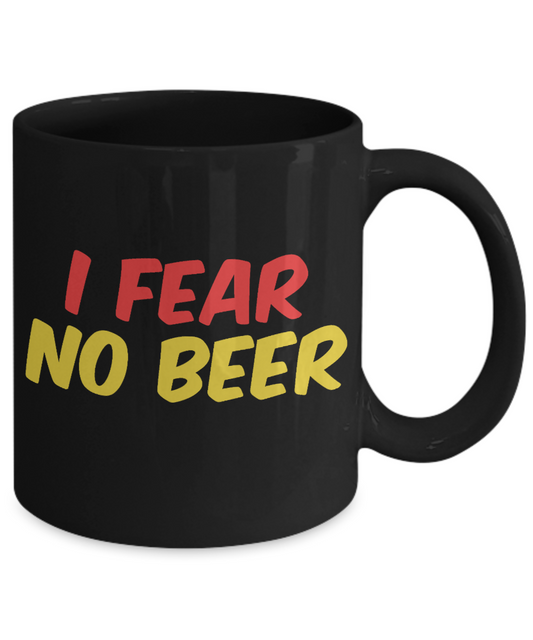 Brewer Coffee Mug, I Fear No Beer-Black Porcelain Coffee Mug 11 oz for Beer lover, dad,mom, husband, wife, Grandpa