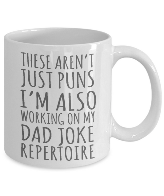 Dear Dad Coffee Mug, These Aren't Just Puns I'm Also Working On My Dad Joke Repertoire-White Porcelain Coffee Mug 11 oz