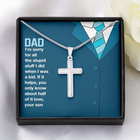 Gift Necklace For Dad, Fathers Day Gift Necklace, Steel Cross Necklace, To My dad Gift Necklace, Gift From Son