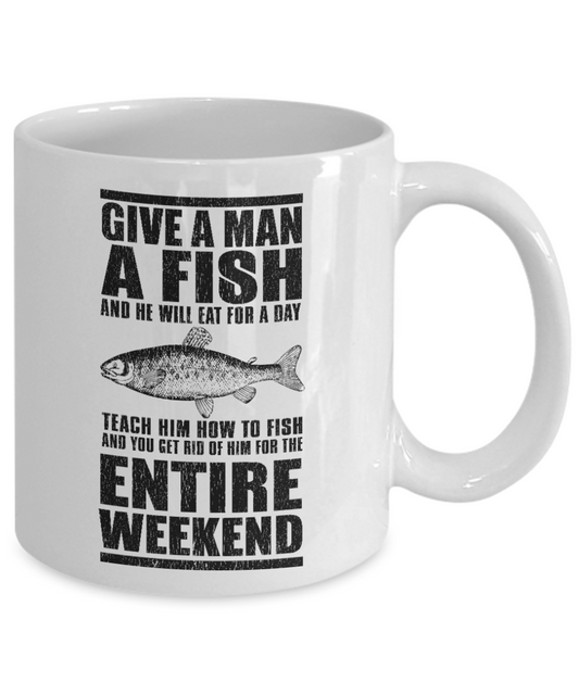 Fishing Love Coffee Mug, Teach Him How To Fish And You Get Rid Of Him-White Porcelain Coffee Mug 11 oz for fishing, fishermen