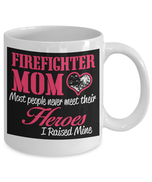 Firefighter Gift Coffee Mug, Firefighter Mom, Most People Never Meet Their Heroes -White Porcelain Coffee Mug 11 oz for Firefighters, Firemen, Mom, Son, Daughter, Mothers Day