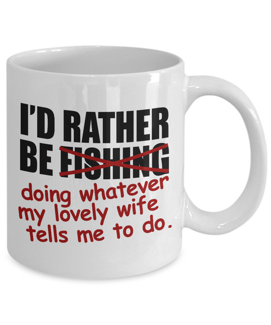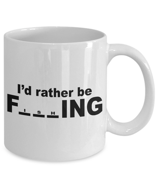 Fishing Love Coffee Mug,I'd Rather Be Fishing-White Porcelain Coffee Mug 11 oz for dad, fishing, fishermen, son, Daughter