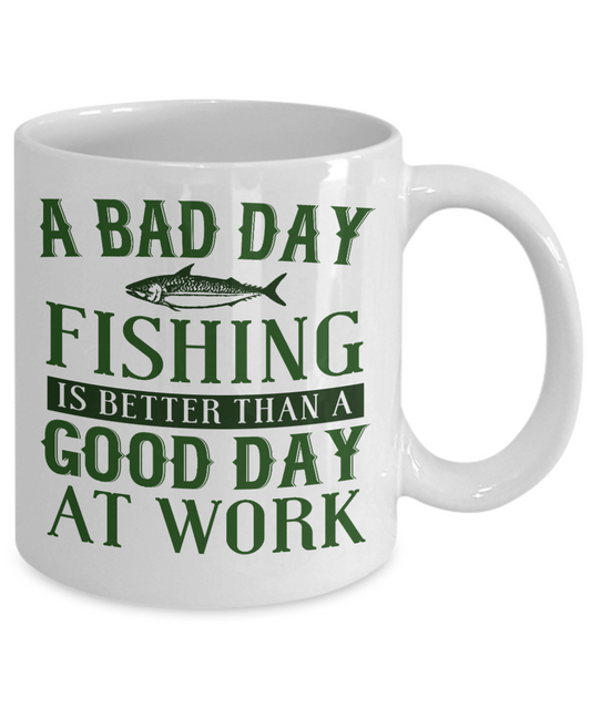 Fishing Love Coffee Mug, A Bad Day Fishing Is Better Than A Good Day At Work -White Porcelain Coffee Mug 11 oz for dad, fishing