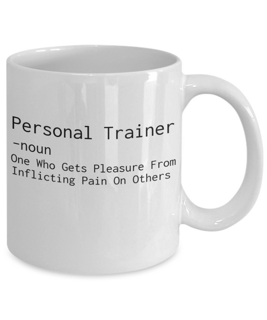 Personal Trainer Coffee Mug, PT coffee Mug, Athletic, Gym, Fitness Trainer, Yoga Trainer- White Porcelain Coffee Mug 11 Oz Funny Quotes Coffee Mug