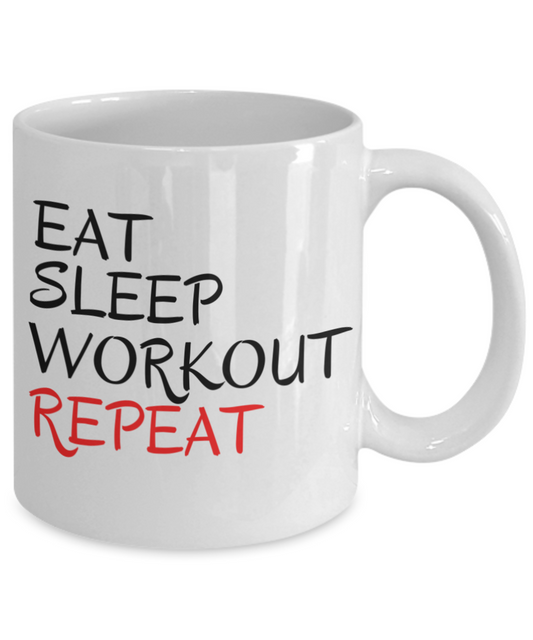 Eat Sleep Workout Repeat, Workout Coffee Mug, Gym Coffee Mug, Fitness Lover Mug- White Porcelain Coffee Mug 11 Oz Funny Quotes Coffee Mug