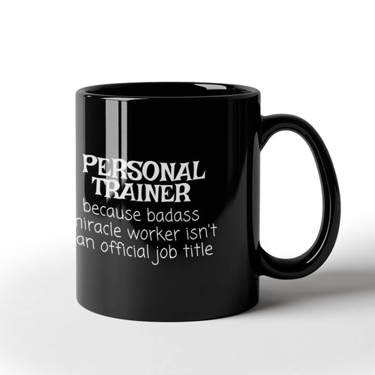 Personal trainer coffee mug, gym trainer, fitness trainer mug, badass miracle worker isn't an official job title-black porcelain coffee m
