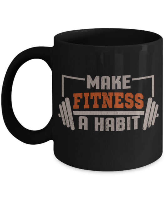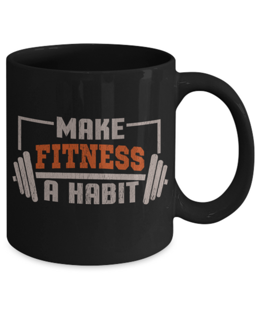 Fitness Lovers Mugs, Make fitness a habit - Funny Black Porcelain Coffee 11 oz