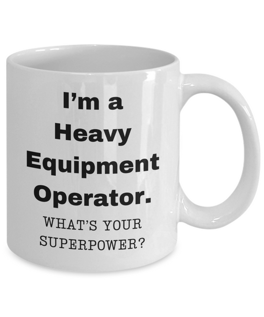 I am a Heavy Equipment Operator, what is your super power, Birthday cup for Heavy Equipment Operator -11 oz White ceramic mug