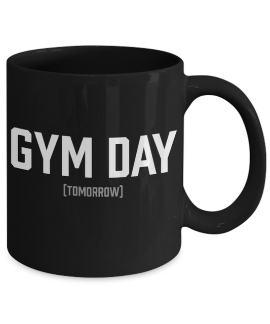 Fitness Lovers mugs , Gym Day Tomorrow - Black Coffee Mug Porcelain Tea Cup 11 oz - Great Gift
