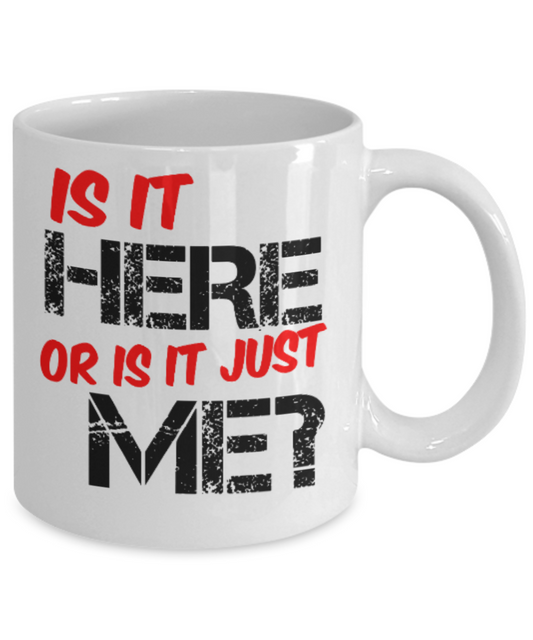 Fitness Lovers mugs , Is it here or is it just me? - White Coffee Mug Porcelain Tea Cup 11 oz - Great Gift