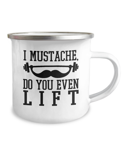 Fitness Lovers mugs , I mustache, do you even lift-12 Oz Stainless Steel Enamel Finish White Camper Coffee Mug
