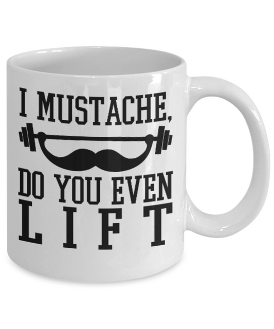 Fitness Lovers mugs , I mustache, do you even lift - White Coffee Mug Porcelain Tea Cup 11 oz - Great Gift