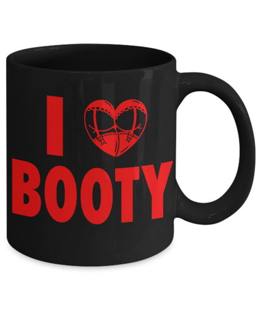 Fitness Lovers mugs , I Love Booty - Black Coffee Mug Porcelain Tea Cup 11 oz - Great Gift