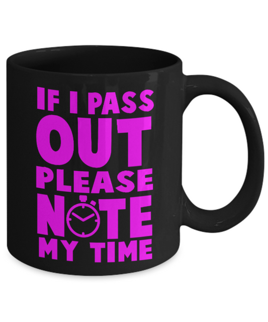 Fitness Lovers mugs , If I pass out Please note my time - Black Coffee Mug Porcelain Tea Cup 11 oz - Great Gift