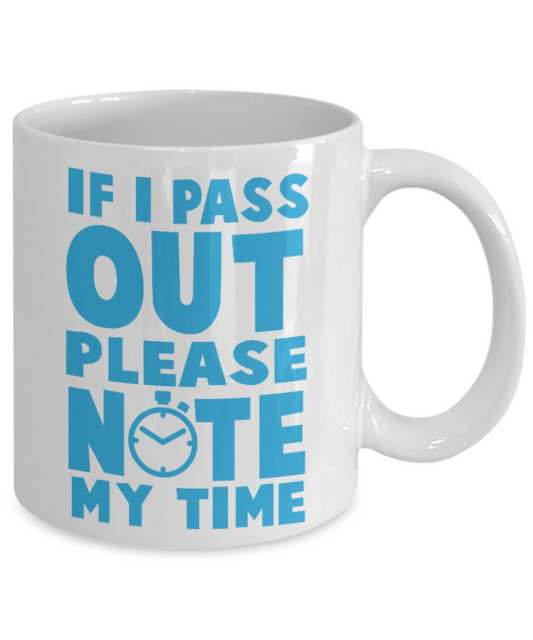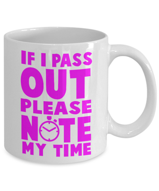Fitness Lovers mugs , If I pass out Please note my time - White Coffee Mug Porcelain Tea Cup 11 oz - Great Gift