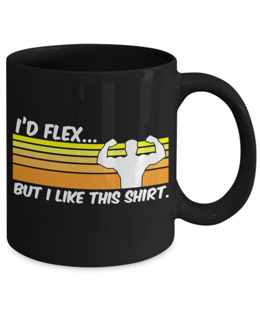 Fitness Lovers mugs , I'd flex but I like this shirt - Black Coffee Mug Porcelain Tea Cup 11 oz - Great Gift