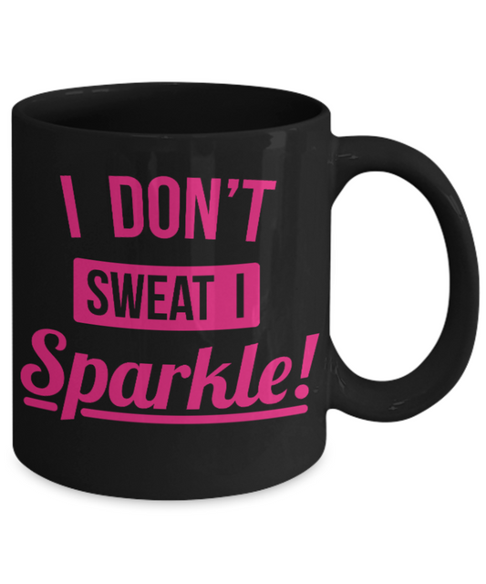 Fitness Lovers mugs , I don't sweat I sparkle - Black Coffee Mug Porcelain Tea Cup 11 oz - Great Gift