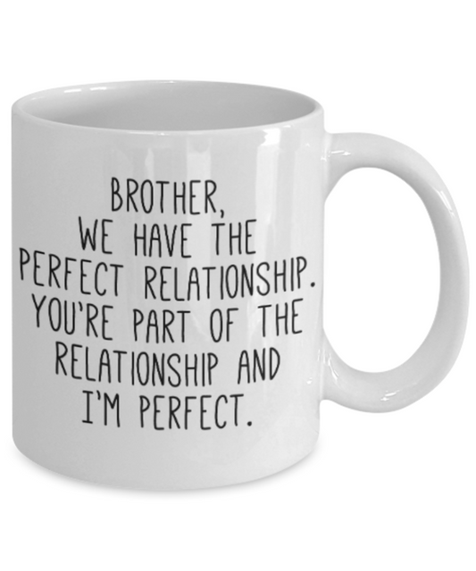 Brother sister design studio gift mug - Brother we have the perfect relationship, You're part of the relationship and I'm perfect - Funny White Porcelain Coffee Mug Cute Ceramic Cup 11 oz