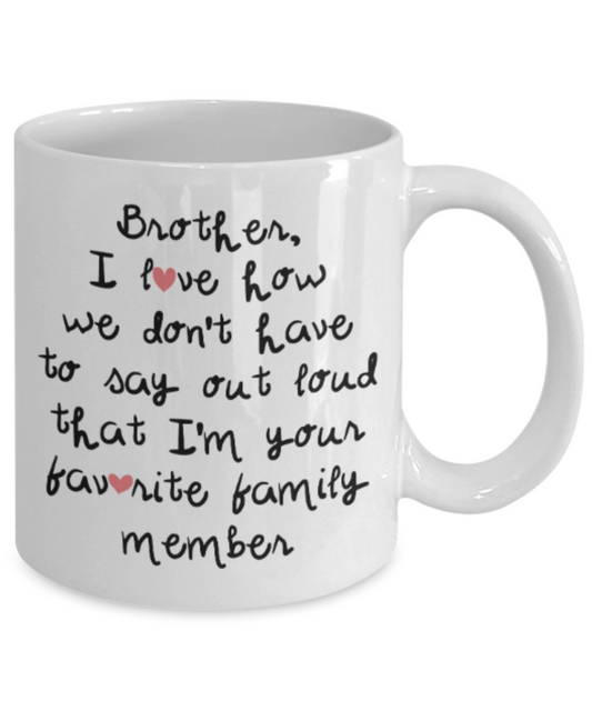 Brother sister design studio gift mug - Brother I love how we don't have to say out loud that I'm your favorite family member - Funny White Porcelain Coffee Mug Cute Ceramic Cup 11 oz