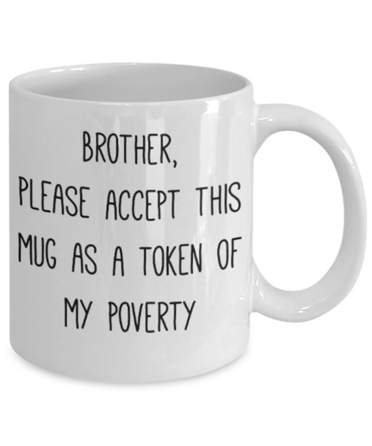 Brother sister design studio gift mug - Brother, please accept this mug as a token of my poverty - Funny White Porcelain Coffee Mug Cute Ceramic Cup 11 oz