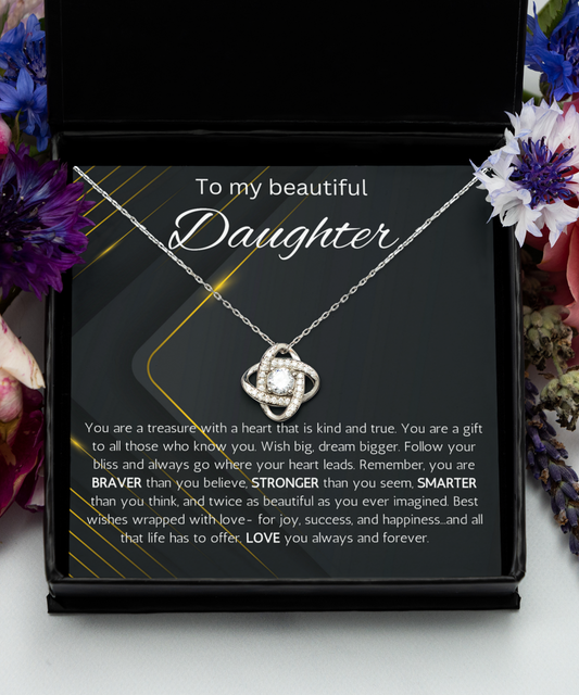 To My Beautiful Daughter Gift Necklace, Love Knot Gift Necklace, Birthday Gift Necklace For Daughter, Gift From Dad, Mom, Graduation, Christmas Gift