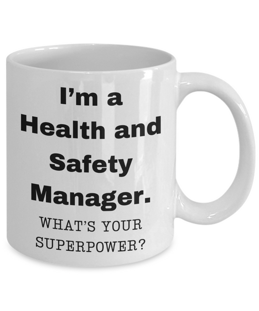 I am a Health and Safety Manager, what is your super power, Birthday cup for Health and Safety Manager -11 oz White ceramic mug