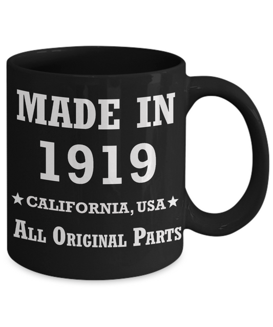 100th birthday gifts for Men/Women - Made in 1919 All Original Parts California - Best 100th Birthday Gifts for family Ceramic Cup Black, Funny Mugs Gift Ideas 11 Oz