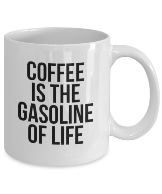 Coffee Is the Gasoline of the Life, Inspirational Quotes Coffee Mug, Coffee Lover Gift Mug- White Ceramic Coffee Mug 11 Oz