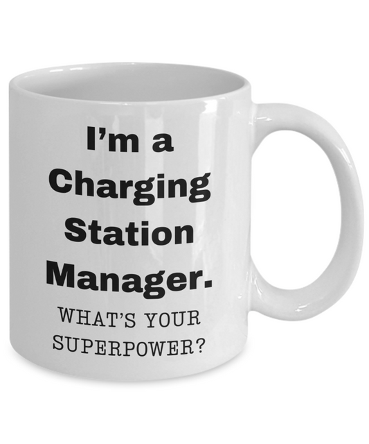 I am a Charging Station Manager, what is your super power, Birthday cup for Charging Station Manager -11 oz White ceramic mug