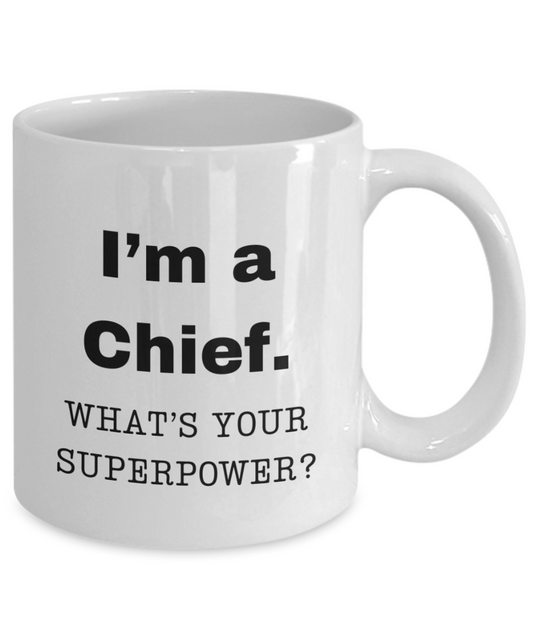 I am a Chief, what is your super power, Chief coffee mug, Birthday cup for Chief -11 oz White ceramic mug