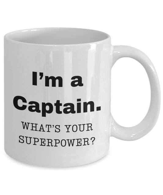 I am a Captain, what is your super power, Captain coffee mug, Birthday cup for Captain -11 oz White ceramic mug
