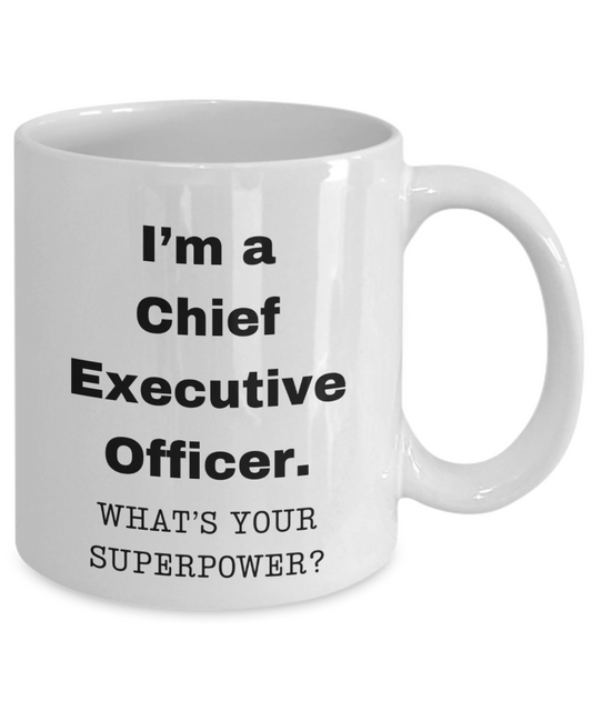 I am a Chief Executive Officer, what is your super power, Birthday cup for Chief Executive Officer (CEO) -11 oz White ceramic mug