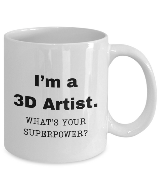 I am a 3D Artist, what is your super power, 3D Artist coffee mug, cup for 3D Artist- 11oz White ceramic mug