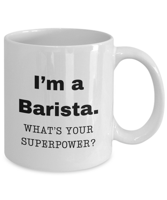 I am a Barista, what is your super power, Barista coffee mug, Birthday cup for Barista - 11 oz White ceramic mug
