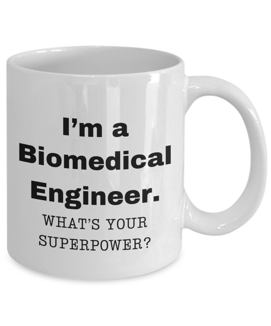 I am a Biomedical Engineer, what is your super power, Biomedical Engineer coffee mug, Birthday cup for Biomedical Engineer-11 oz White ceramic mug