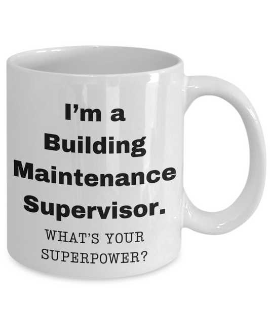 I am a Building Maintenance Supervisor, what is your super power, Birthday cup for Building Maintenance Supervisor -11 oz White ceramic mug