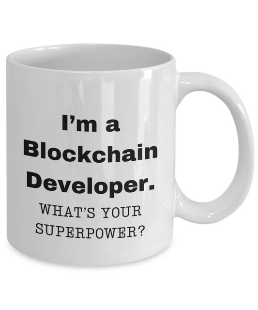 I am a Blockchain Developer, what is your super power, Blockchain Developer coffee mug, Birthday cup for Blockchain Developer-11 oz White ceramic mug