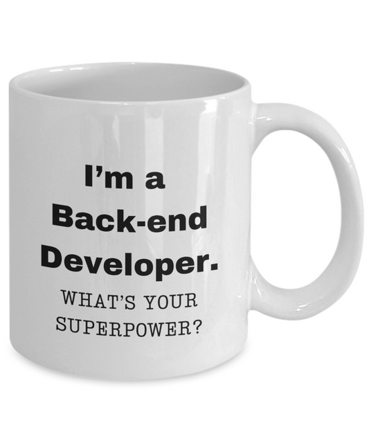 I am a Back-end Developer, what is your super power, Back-end Developer coffee mug, Birthday cup for Back-end Developer - 11 oz White ceramic mug