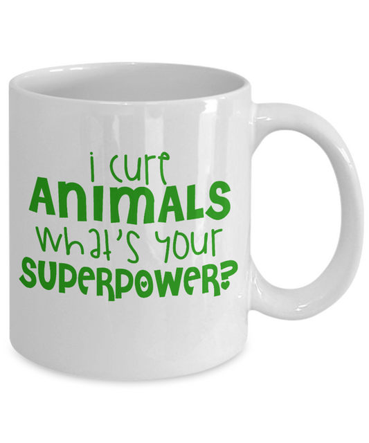Vet Tech Coffee Mug, I Cure Animals What's Your Superpower -White Porcelain Coffee Mug 11 oz for Veterinarian, vet,doctor,technician