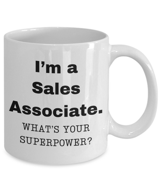 I am a Sales Associate, what is your super power, Sales Associate coffee mug, Birthday cup for Sales Associate -11 oz White ceramic mug