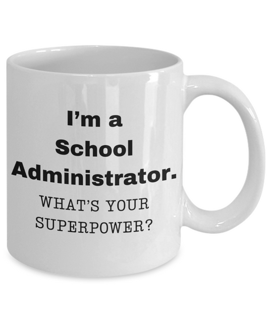 I am a School Administrator, what is your super power, Birthday cup for School Administrator -11 oz White ceramic mug