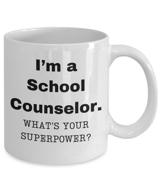 I am a School Counselor, what is your super power, School Counselor coffee mug, Birthday cup for School Counselor -11 oz White ceramic mug
