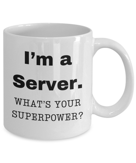 I am a Server, what is your super power, Server coffee mug, Birthday cup for Server -11 oz White ceramic mug