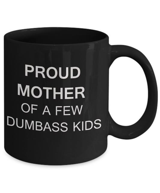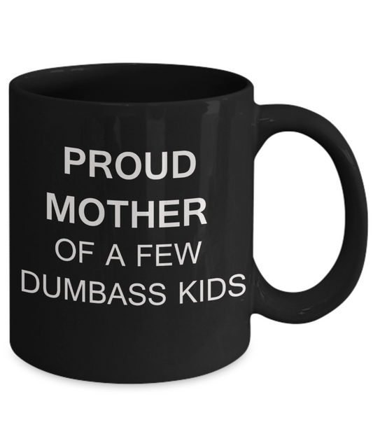 Tired as a mother mug - Proud mother of a few dumbass kids - Black Porcelain Coffee Mug Cute Ceramic Cup 11 oz