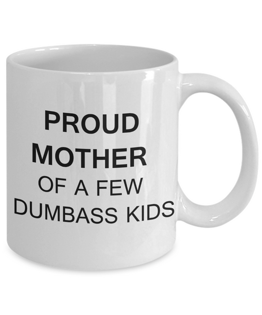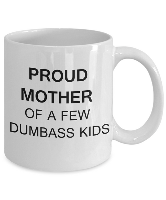 Tired as a mother mug - Proud mother of a few dumbass kids - White Porcelain Coffee Mug Cute Ceramic Cup 11 oz