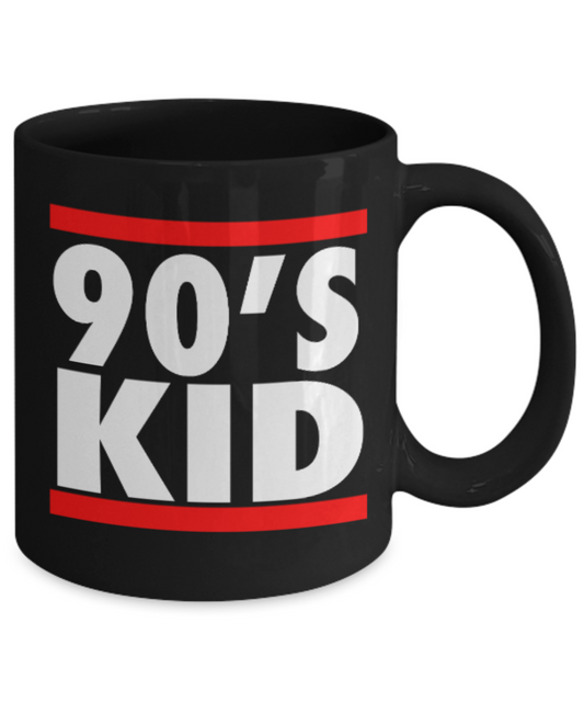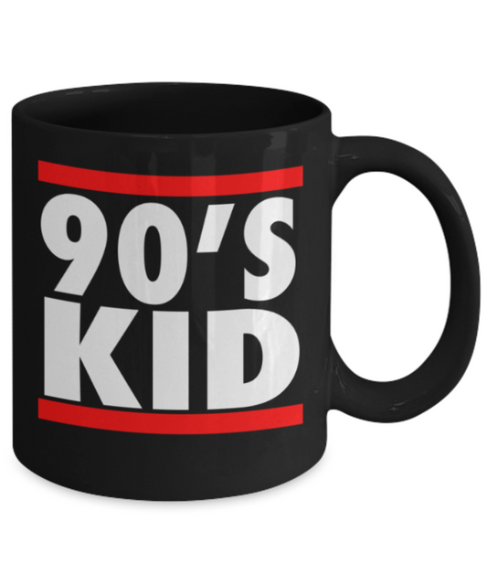 Pop culture lovers mugs , 90's Kids - Black Coffee Mug Porcelain Tea Cup 11 oz - Great Gift