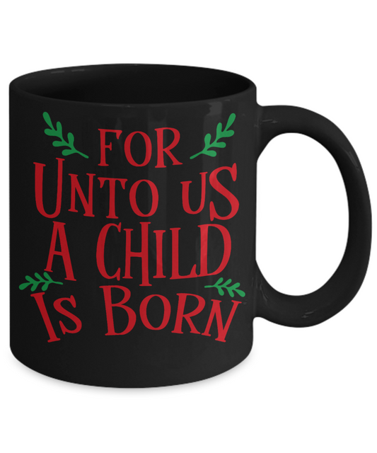 Christmas Gifts for Newly Born Kids - For Unto Us A Child Is Born - Funny Christmas Gifts Mugs, Christmas Gifts for family Ceramic Cup Black, Funny Mugs Gift Ideas 11 Oz