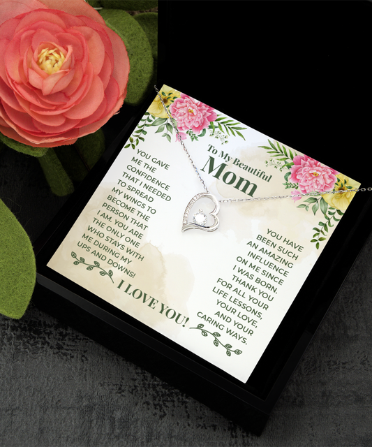 To My Beautiful Mom Gift Necklace, Birthday gift Necklace For Mom, Mothers Day Gift necklace For Mom, Solitaire Crystal Necklace, Birthday Party Gift Necklace